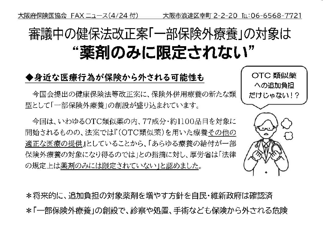 薬の追加負担反対FAXニュース